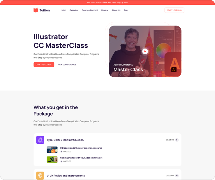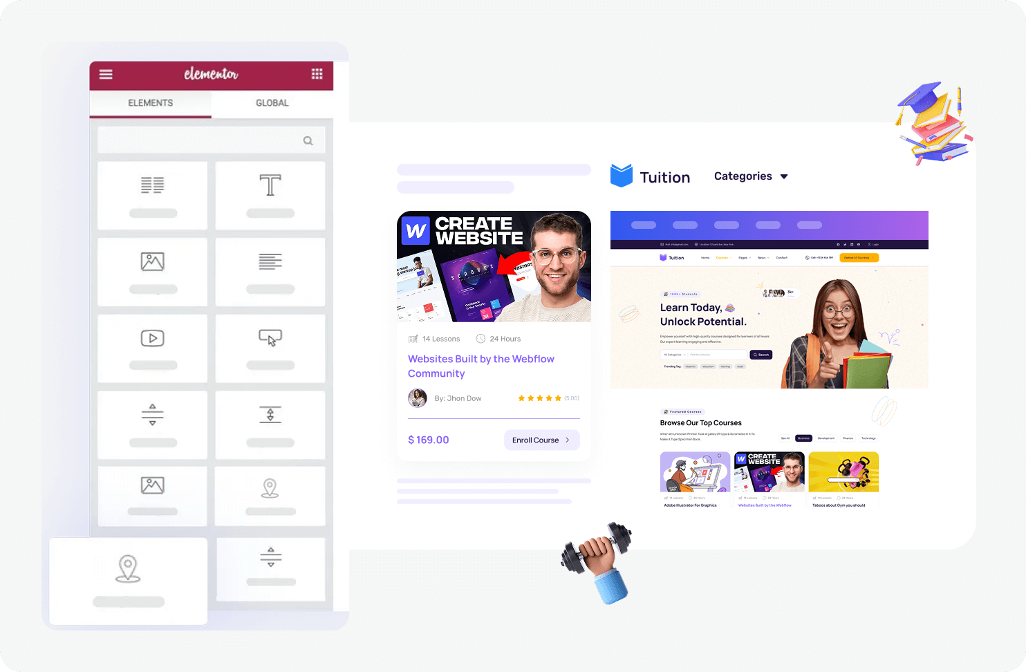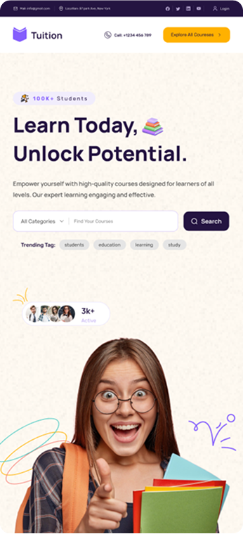 Tuition is fully customizable with drag-and-drop builders, flexible layouts, and endless design options to suit any educational purpose.