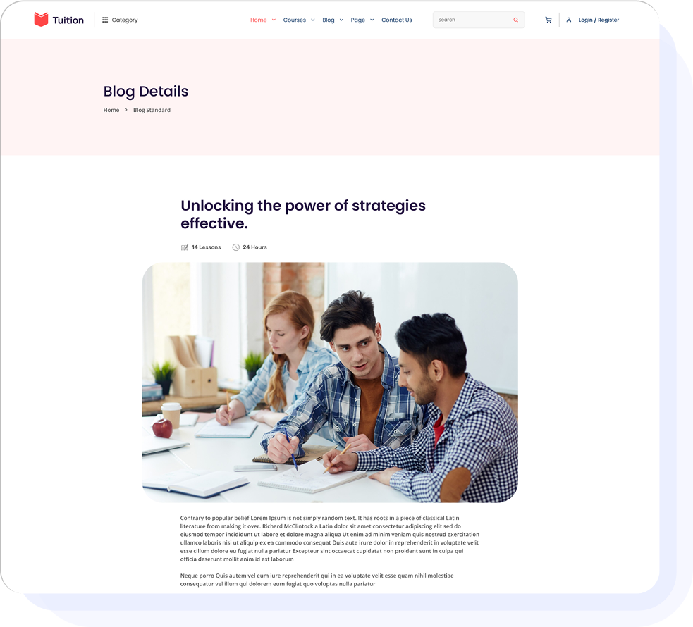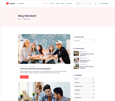 Have a nice blog layout for presentation your articles. You can choose from over available blog templates in Tuition education Theme.