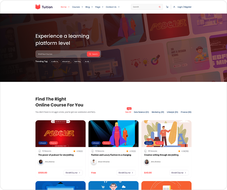 After using many themes and templates... I finally purchased (Tuition) I found What i needed to launch my online courses I Recommend It, It Gives the best experience specially for the user and also the customer support they’re the best.